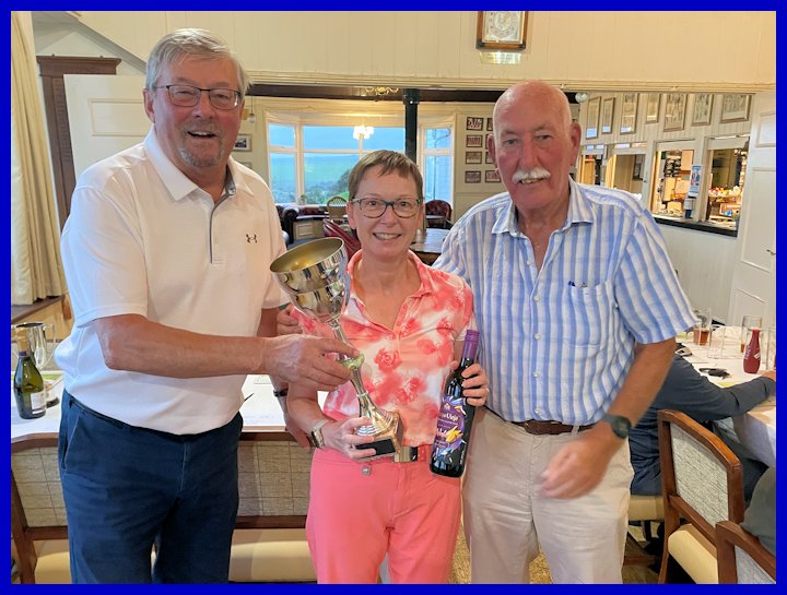 At the Autumn meeting, the Bob Russell Trophy is also awarded to the player with the highest combined score from the Spring and Autumn meetings. and the winner this year with a total of 61 points, Julie Webb. The trophy was handed to Julie by Bob Russell who had kindly agreed to join us after the golf. A close second, just one point behind was John Jago and in joint third place , one further point behind were Graham Clark and Barry Davis
