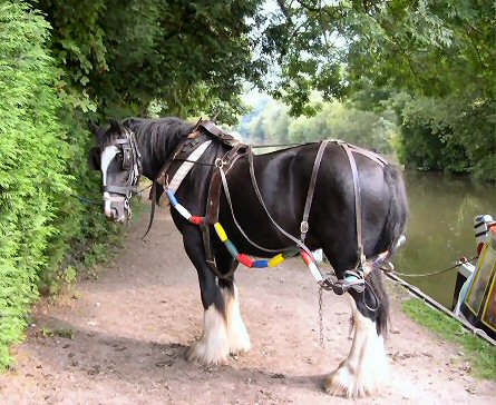 This boat, which has no engine, was then pulled along the canal by 'Freddie' a three year old Welsh Cob Cross Shire horse.