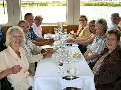 The first day trip of the year saw a full coach of 49 members and their guests leave Hove Town Hall and the Withdean Stadium on their way to London. The weather was bright and sunny with just a few clouds as we arrived at the Embankment Pier on the River Thames to board the Lunch Cruise ship the 'Naticia'. We left the pier at 12.30pm for our 90 minute trip on the Thames and a two course lunch.