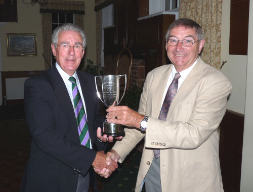 For the second season, the Bob Russell Cup was played for with the winner being the best combined score from the Spring and Autumn meetings. Again the scoring was very close and by just a single point, the winner was Mike Lansdall and here is Robin presenting Mike with his trophy.