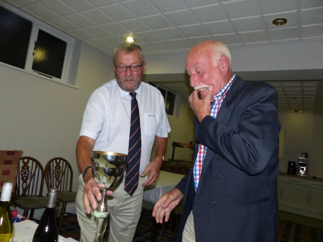 Chris then asked Bob Russell to present the awards for the best overall scores, where the points earned in the Spring and Autumn meetings are combined and in third place was Don Semmons with a combined score of 58 points, second was Barry Davis with 63 points and the winner and now proud holder of the Bob Russell Trophy, was John Jago with 65 points.