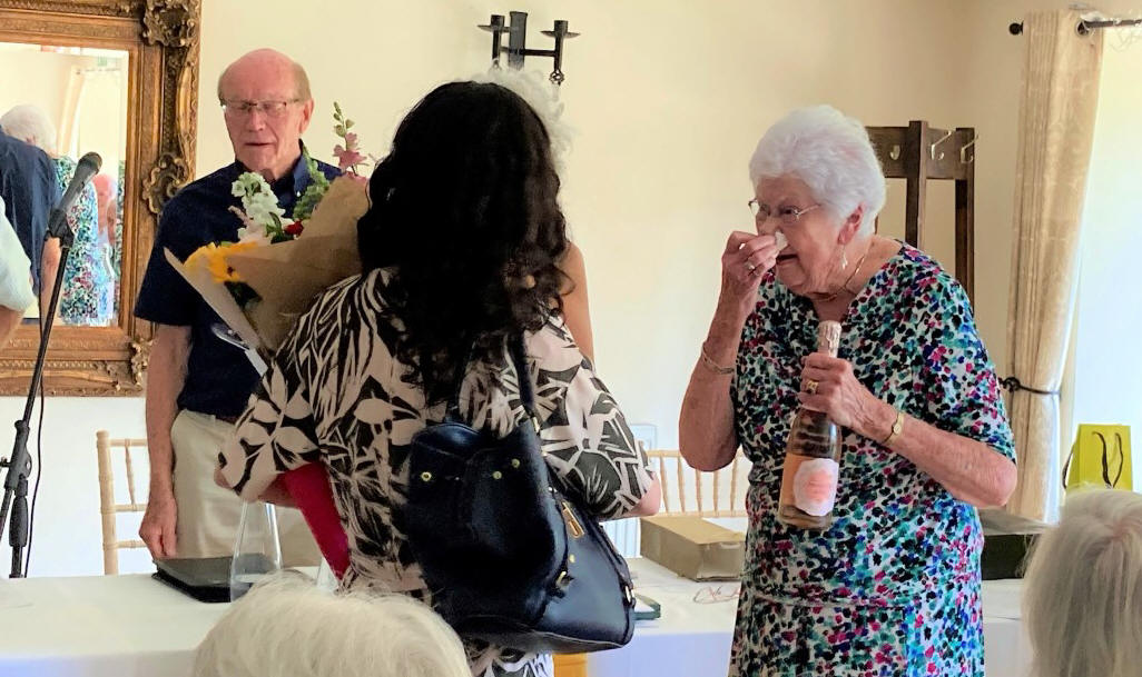 As soon as the AGM had been declared closed, Graham mentioned that the day happened to be Jean's 91st birthday and that Don had arranged a little surprise for Jean. Don asked Jean to join him at the front of the top table and after a very short delay, two ladies arrived carrying a birthday cake and a lovely bouquet of flowers followed by a resounding rendition of 'HAPPY BIRTHDAY'. The first lady, carrying the cake was Fiona, Jean's daughter and the second young lady was Senga, Jean's granddaughter and Jean had no idea that they were coming to the lunch and for a few moments was overcome with the surprise of seeing her daughter and granddaughter. The flowers had been from all the Club members in recognition of Jeans' work over the last 26 years.