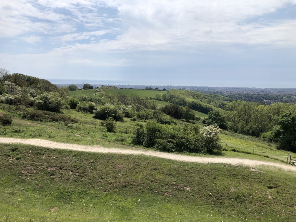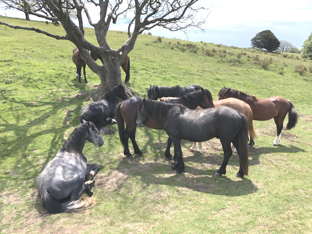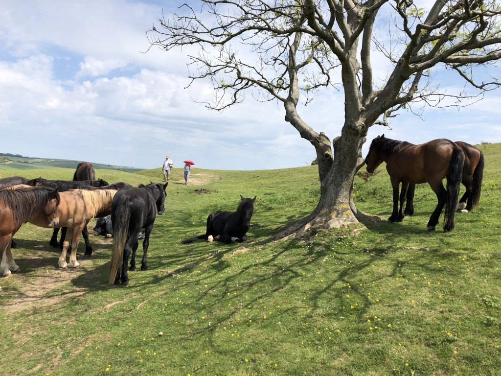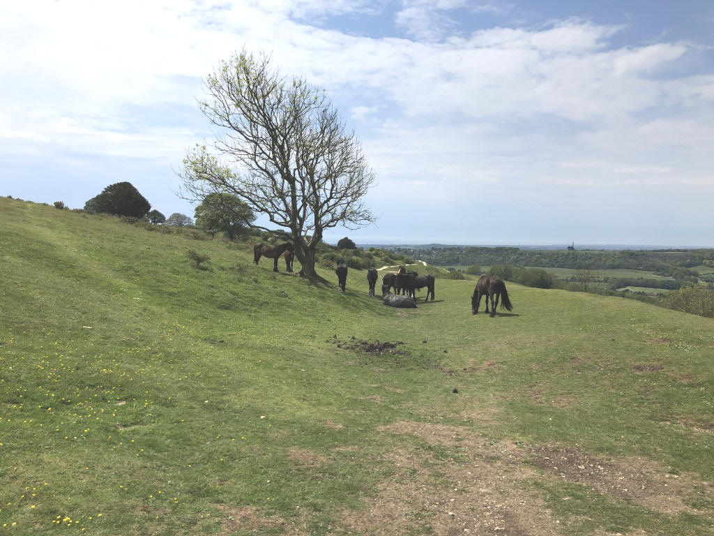 The fitter - or dafter - members made their way up to the Neolithic ring and were treated with stunning views across the coast to the Isle of Wight and across the Weald towards the North Downs. Although it was a warm day, there was a cooling breeze which made it ideal walking weather. A small herd of New Forest Ponies grazed quietly at the top having been relocated to Sussex as part of the programme to restrict the numbers grazing in the New Forest.
