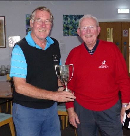 The Bob Russell Cup is normally awarded for the highest combined score for the Spring and Autumn Meetings, but as one meeting this year and one last year had to be cancelled because of the pandemic, the Cup this year was awarded to the player with the highest combined score over the last two meetings and this was awarded to Peter Elliott. See photo below of Peter receiving his award from Bob Russell.