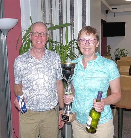 After a very enjoyable round of golf and an excellent two course supper, the organisers. Chris Hudson and John Jago made the announcements and started by welcoming two 'new' members to our golf days, Terry and Julie Webb. Not only was this their first appearance, but also a successful one, with Julie winning the Mike Barrett Trophy for the best score of the day and Terry taking second place, closely followed by Brian Fitch and Ian Massbery.