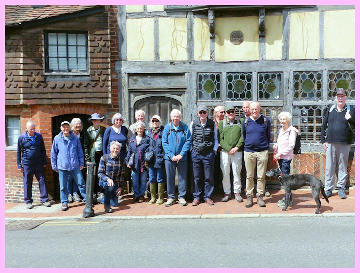 We stopped for a group photograph in front of the building that used to hold the Ditching Sub Branch of Barclays Bank, needless to say, it closed in August 1999 and Graham recalled that the cashier used to wear a crash helmet at times to avoid the dropping from the death watch beetles that were ever present...what a nice thought. It is now a Grade II listed building under the auspices of Historic England and is detailed as:- Not now a bank. Restored C16 timber-framed building with plaster infilling in front, north wall faced with red brick on ground floor and tile hung above. Gable to each front. Tiled roof.