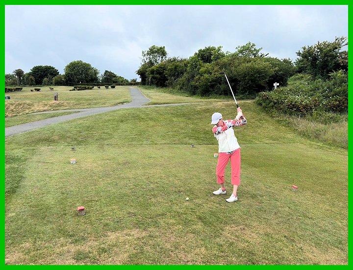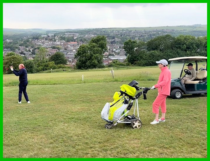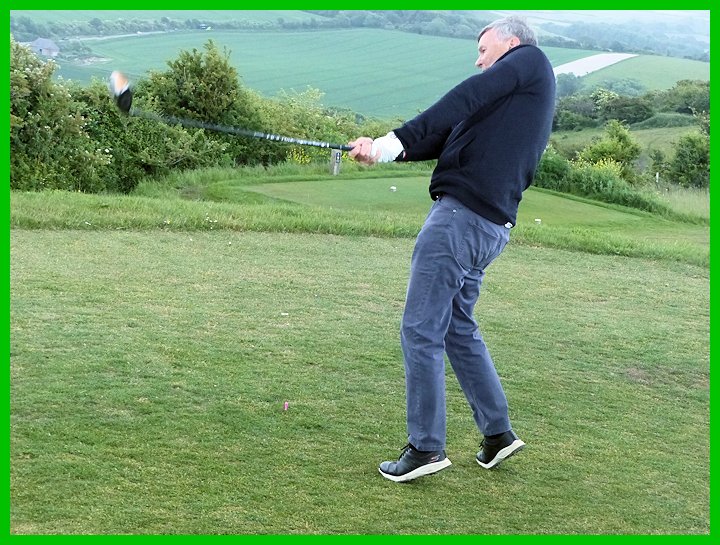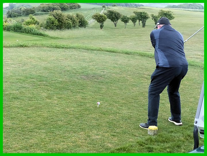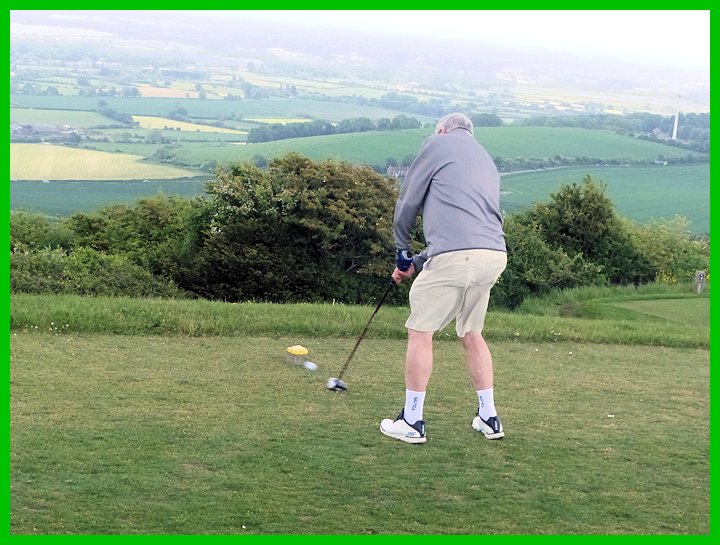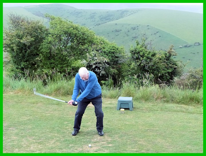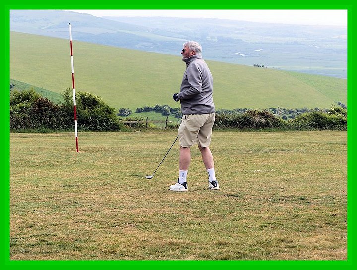 After the usual bacon rolls and coffees, we set out round the hilly course with some using buggies to aide their aging legs...including me!